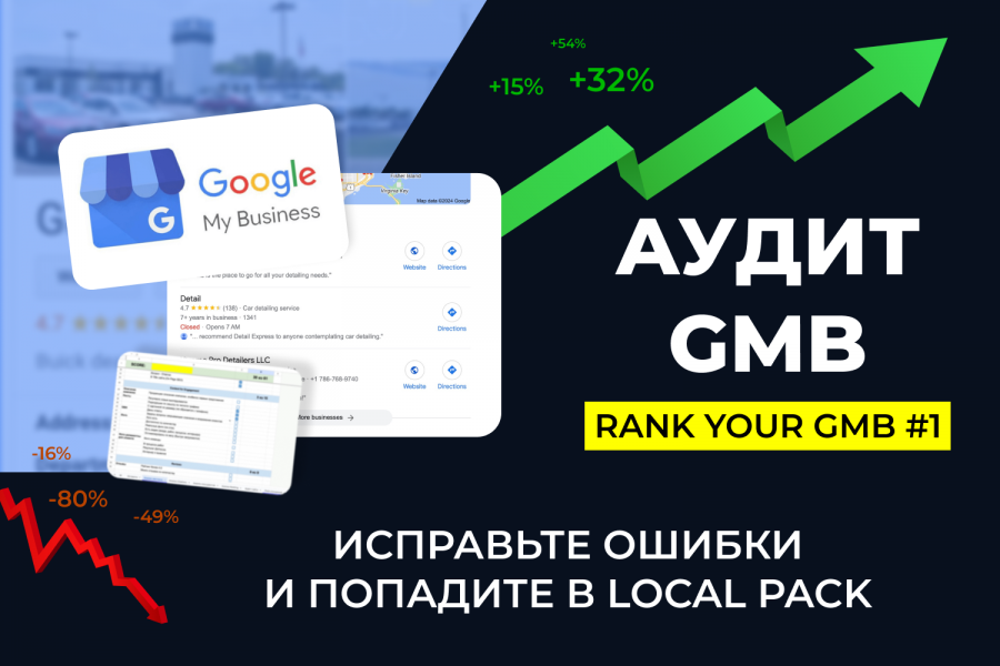 В аудит вашего листинга GMB по 60+ пунктам входит: