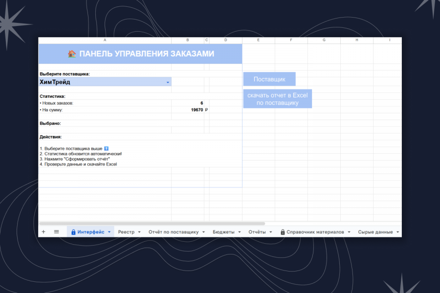 ✅ Нажимаете кнопку — система распределяет заказы, считает бюджет, формирует отчёт