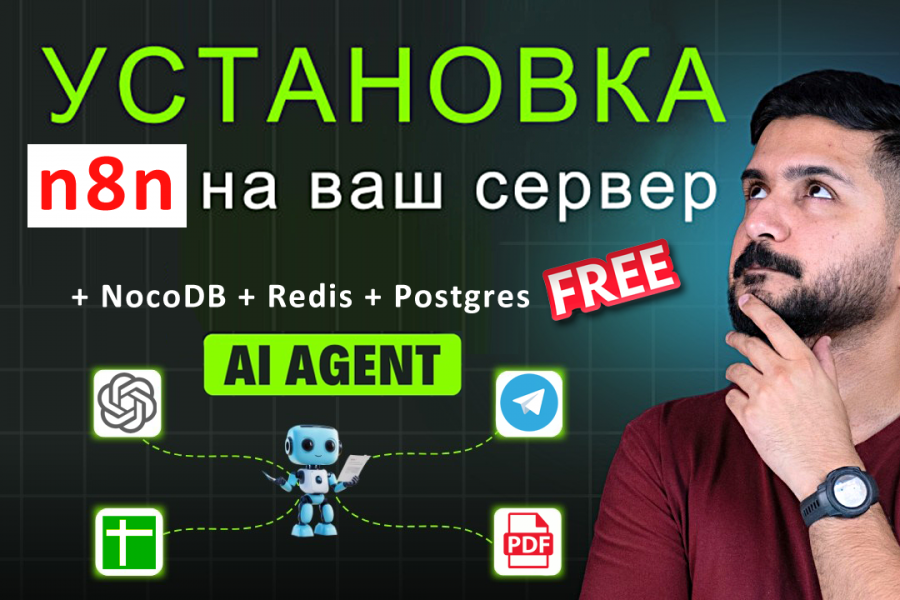 Я помогу вам установить n8n — бесплатную и мощную альтернативу Make.com, которую вы контролируете на 100%. Это ваш собственный сервер автоматизации: работает быстро, надёжно и без лишних трат.