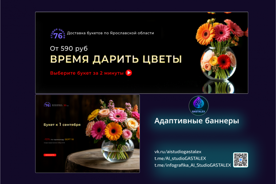 Создаю адаптивные баннеры для соцсетей и веба — с генерацией через нейросети и доработкой в Figma, чтобы каждый кадр идеально вписывался в формат и привлекал внимание.Быстро. Чётко. Без воды.