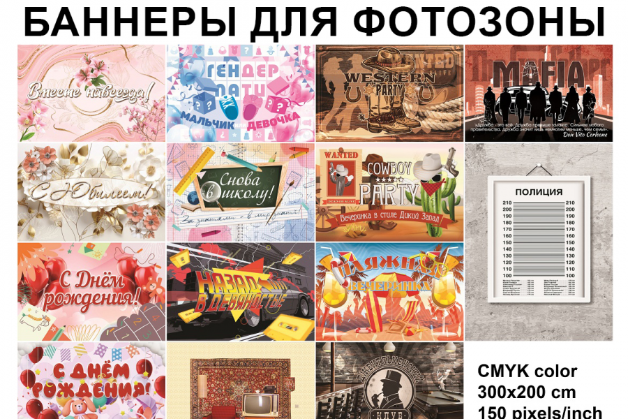 Макеты баннеров для фотозоны формата 2 на 3 метра. Под печать, формат: CMYK color, 300x200 cm, 150 pixels/inch.