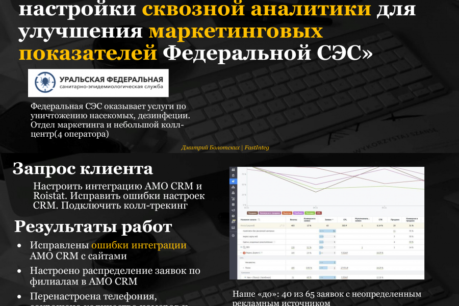 • Настройка бизнес процессов и воронки продаж(до 3х воронок);
