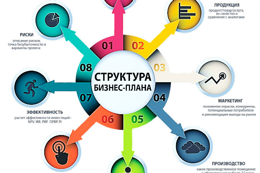 Включает: 1. Резюме 2. Описание компании 3. Анализ рынка 4. Маркетинговая стратегия 5. Операционная стратегия 6. Организационная структура 7. Финансовый план 8. Анализ рисков 9. Приложения