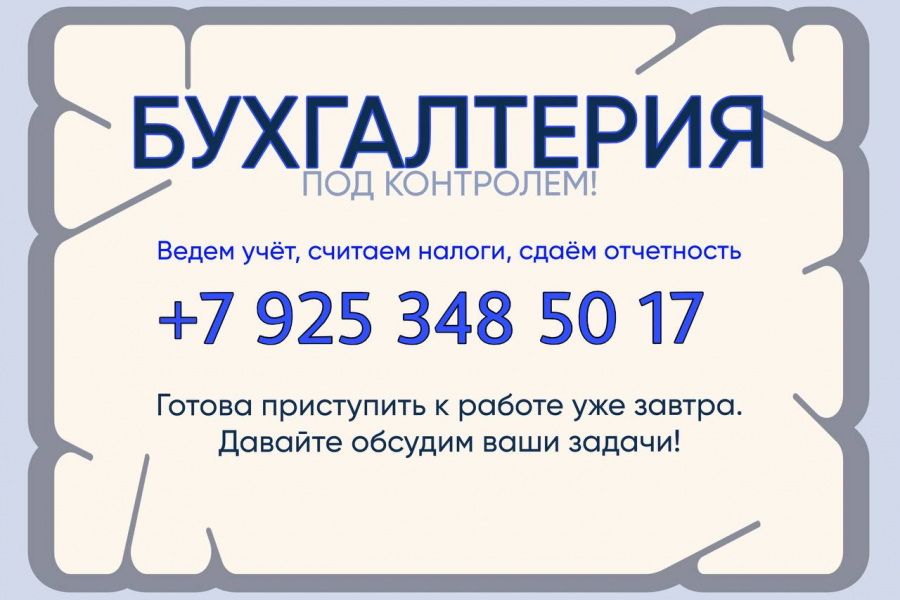 • Экономия времени и денег. Вам не нужно содержать штатного бухгалтера: я беру на себя весь объём работы зафиксированную плату — без переплат комиссий.
