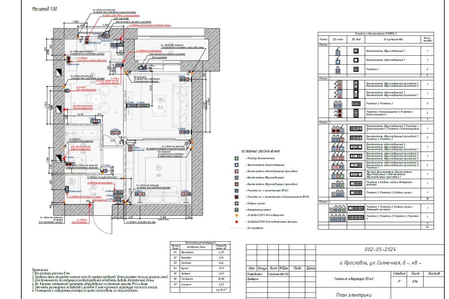 - План розеток и выключателей;