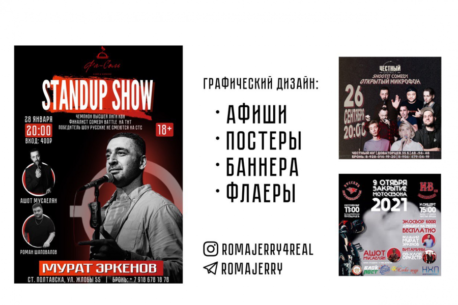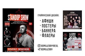 Разработка одностороннего макета постера (афиши, баннера) любого размера с Вашей информацией. Подготовка к печати.