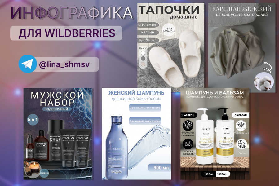 Создаю инфографику товаров для маркетплейсов. - анализирую конкурентов - разрабатываю дизайн - обрабатываю фото - качество гарантирую