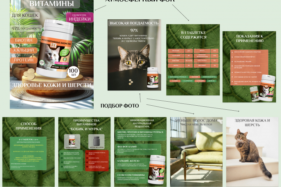 Создам красивую и качественную инфографику для любого маркетплейса (Ozon, Wildberries, Я. Маркет). Так же могу создать видео инфографику. Дизайном карточек занимаюсь более 3 лет. Работаю в Figma, Supa. Активно использую нейросети в своей работе-что исключает нарушение авторских прав.