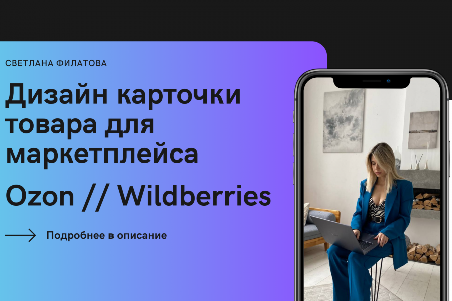 Здравствуйте! Меня зовут Светлана, и я предлагаю профессиональный дизайн карточек товаров для Ozon и Wildberries.