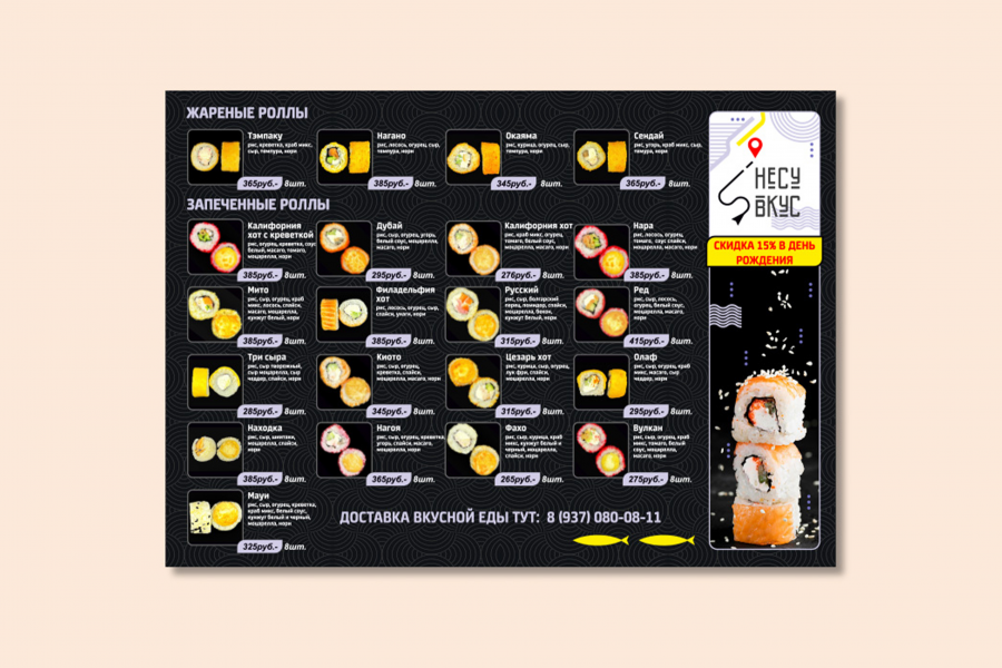 - дизайн меню любого формата для кафе и ресторанов.