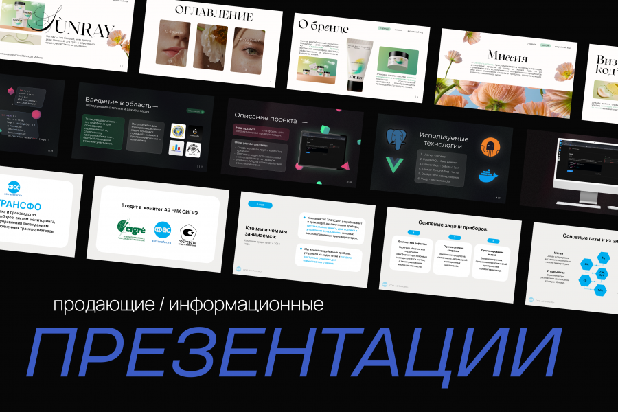 В стоимость дизайна с нуля входит разработка концепта (цветовая палитра, шрифтовая пара, стиль графики) и дизайн всех слайдов.