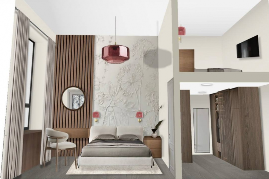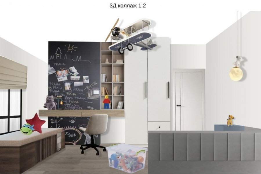 «Эскизный проект». В него входит : Обмерный план, расстановка мебели, 2-3 коллажа и визуализация в программе «Photoshop”.