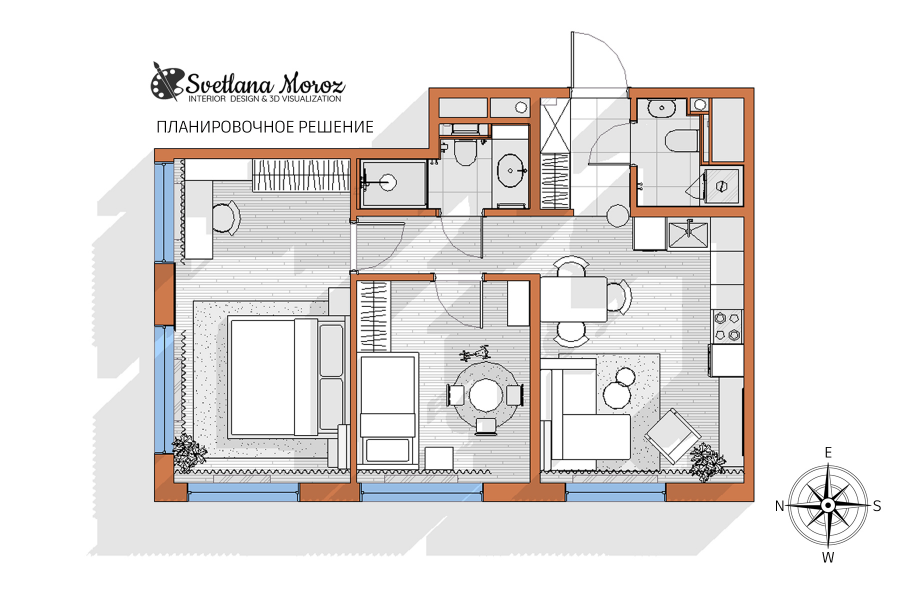 🔸 Финальные 2D и 3D варианты планировочного решения
