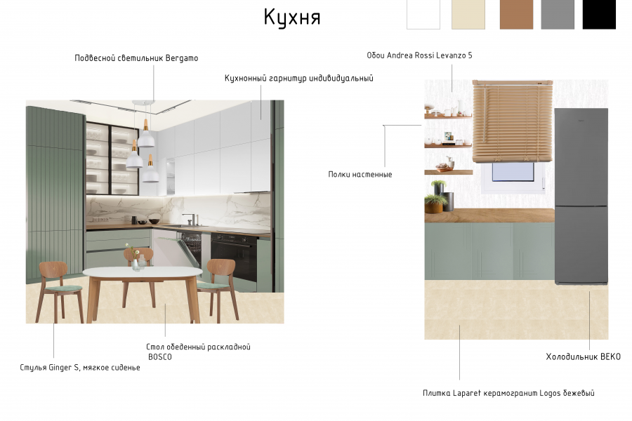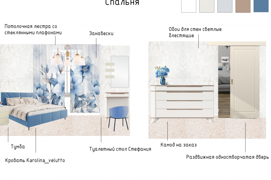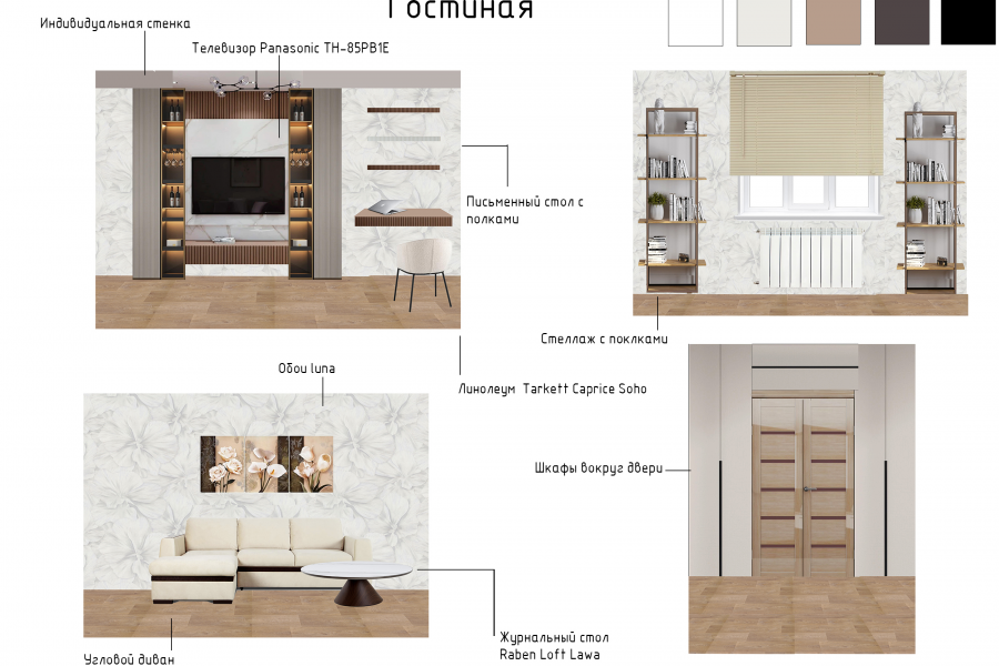 Дизайн проект интерьера с коллажом и подбором мебели