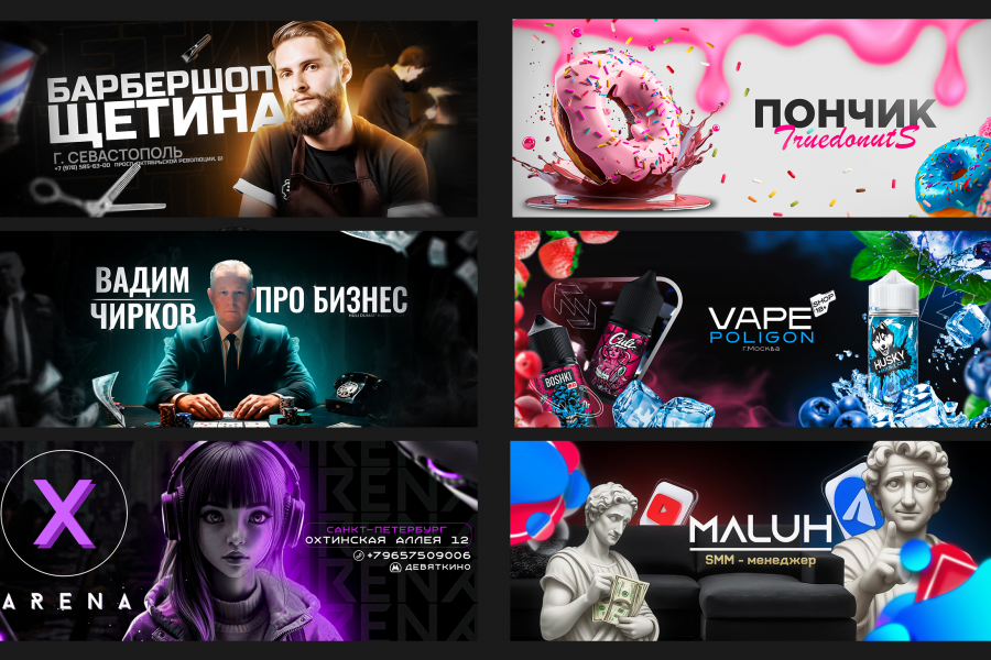 В пакет услуги входит: Аватарка, Шапка, 3 кнопки меню, 2 виджета, 1 рекламный баннер