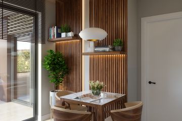 Фотореалистичные рендеры и 3Д моделирование маленкой уютной кухни в современном стиле. Внимание к деталям, текстурирование, освещение и детализация на высоком уровне.