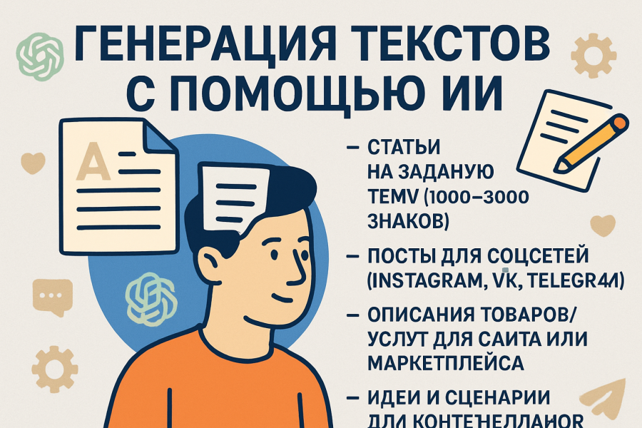 Создаю тексты с помощью ChatGPT и адаптирую их вручную под вашу задачу. Оформляю структуру, проверяю стиль и обеспечиваю читабельность.
