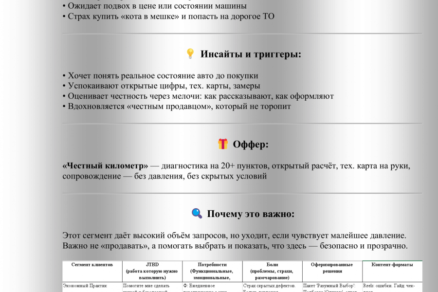 🔍 Глубокий анализ ЦА — это точная карта болей, триггеров и решений ваших клиентов. Вы начинаете говорить на языке аудитории — так, чтобы вас слышали и покупали.