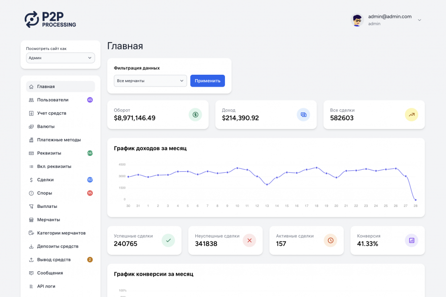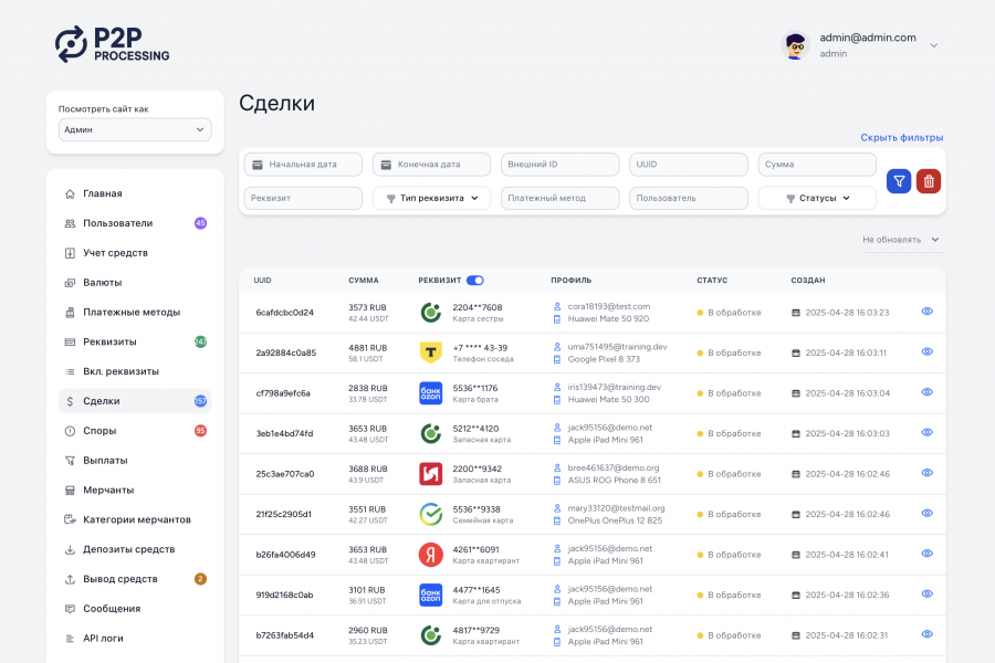- Кабинет для работы трейдера, мерчанта, тимлидера и саппорта
