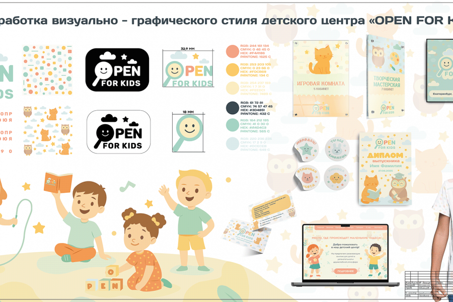Также разрабатываю rich-контент, брендбуки и фирменный стиль. Создаю логотипы, айдентику, иллюстрации (в том числе для книг). Есть опыт в интерьерном и ландшафтном дизайне.