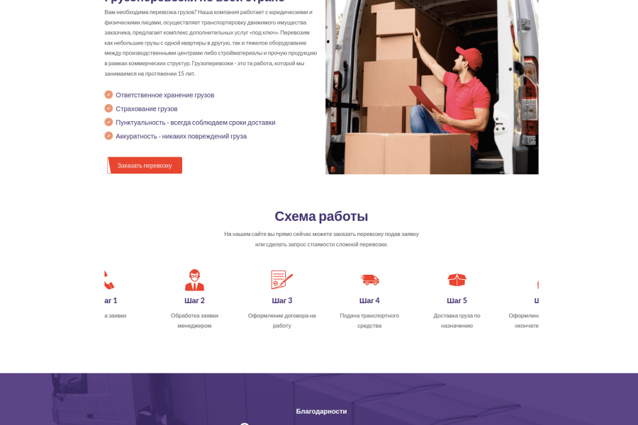 Если Ваша компания занимается грузоперевозками - то данный лендинг предлагает широкие возможности по привлечению новых клиентов. Сайт подойдет всем, чья деятельность грузчиков связана с переездами, перевозками и доставкой грузов как внутри одного города, так и между населенными пунктами.