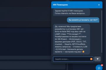 Предлагаю установку интеллектуального чат‑бота, работающего на основе технологии Retrieval‑Augmented Generation (RAG). Решение предназначено для автоматизации ответов на вопросы пользователей с учётом ваших внутренних данных и материалов. Рабочий пример есть в моём портфолио. Решение позволяет быстро внедрить полноценного AI‑ассистента, который использует ваши собственные данные, обеспечивает точные ответы.