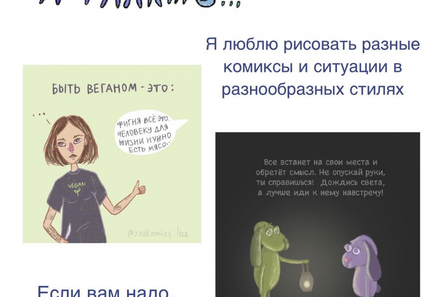 Создаю авторские иллюстрации с нуля: оформление постов с соц.сетях, обложек, авторских стикеров, печатной продукции. Работаю в Procreate :)