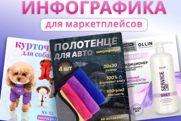 Цена указана за одну карточку товара, каждая инфографика разрабатывается с учетом уникальных потребностей вашего бизнеса, что позволяет создать оригинальные и запоминающиеся визуальные материалы.