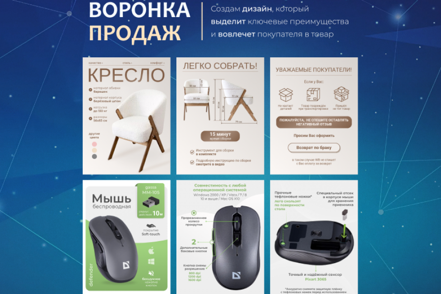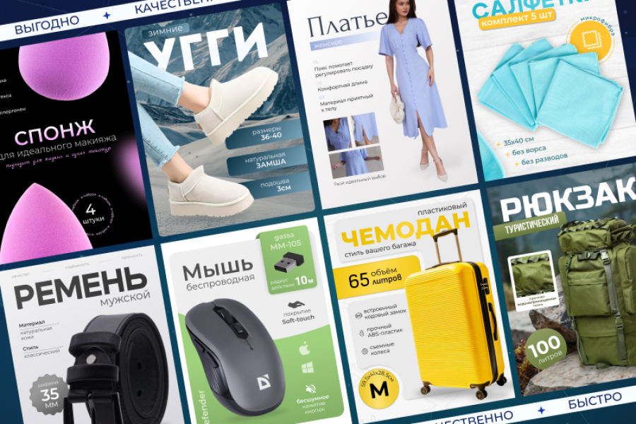 Инфографика, которая выделит вас среди конкурентов! Сделаю инфографику для любого маркетплейса - Ozon, Wildberries, Яндекс маркет, avito. Работаю в Figma и Canva. По желанию, с использованием нейросетей.