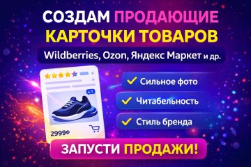 Создам продающую инфографику и оформление карточек товаров для Wildberries, Ozon, Яндекс Маркет и других маркетплейсов. Делаю упор на сильное первое фото, читаемую подачу и единый стиль бренда, чтобы ваш товар выделялся в выдаче и повышал конверсию.
