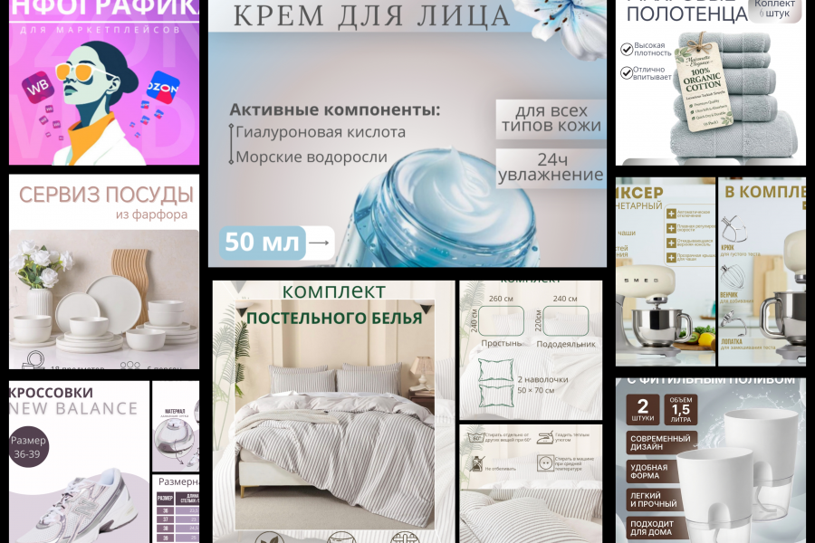 Предлагаю услуги по созданию инфографики для маркетплейсов. Имею сертификат. Работаю в программе Канва. Также использую приложении ИИ. Работаю по ТЗ и без него. Подхожу к работе качественно и ответственно. Работаю максимально в короткие сроки 1-3 дня в зависимости от работы.