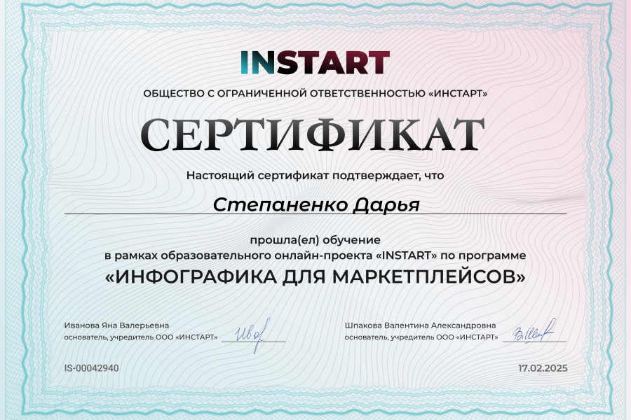 Имеется сертификат по обучению инфографики.