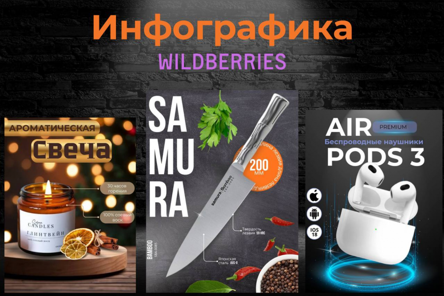 Меня зовут Эммилия , и я готова помочь создать для вас эффективную инфографику, которая привлечёт больше клиентов и увеличит продажи на WILDBERRIES!