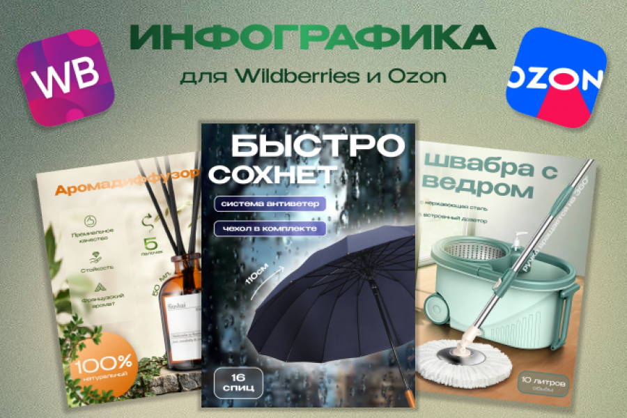 Создам стильную и информативную инфографику для карточки товара — под Wildberries и Ozon.