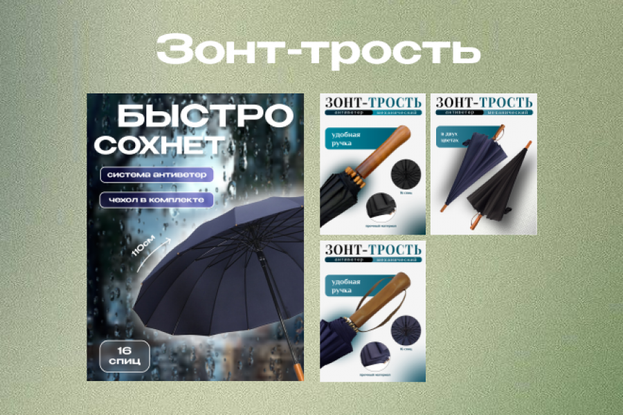 Работаю в Figma — чистый, аккуратный слой, адаптация под стандарты платформ. Учитываю особенности отображения на WB и OZON: соотношение сторон, порядок блоков, читаемость на мобильных.