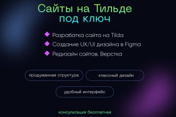 // Комплексная разработка сайта под ключ на Тильде от 5 дней. // С уникальным дизайном в zero-блоках. // Домен в подарок. Работаю по договору. Стоимость и сроки проекта рассчитываются индивидуально.