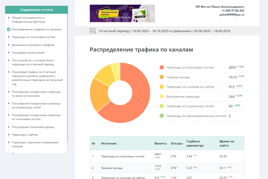 В стоимость входит: внутренняя оптимизация сайта, написание и размещение уникальных статей с картинками, перелинковка, отчеты 2 раза в месяц, моя работа, устранение критических ошибок и т.д.