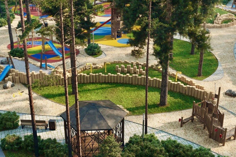 - Озеленение территории с работой профессиональных дендрологов-ботаников, работа с рельефом, природными материалами и водой