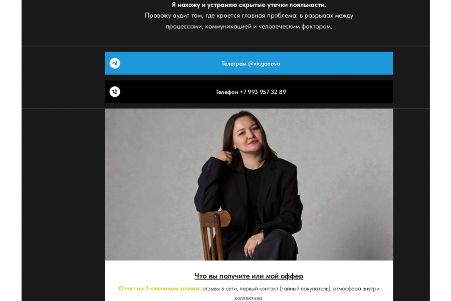 Я помогаю владельцам частных клиник находить и устранять скрытые причины, по которым пациенты не возвращаются. Моя сильная сторона — вижу бизнес глазами клиента, потому что сама работала и в маркетинге, и внутри медицинской компании.