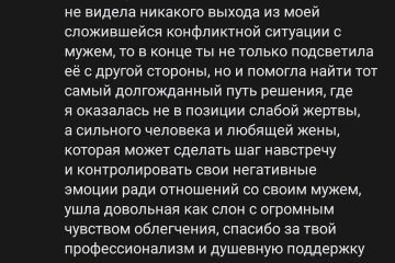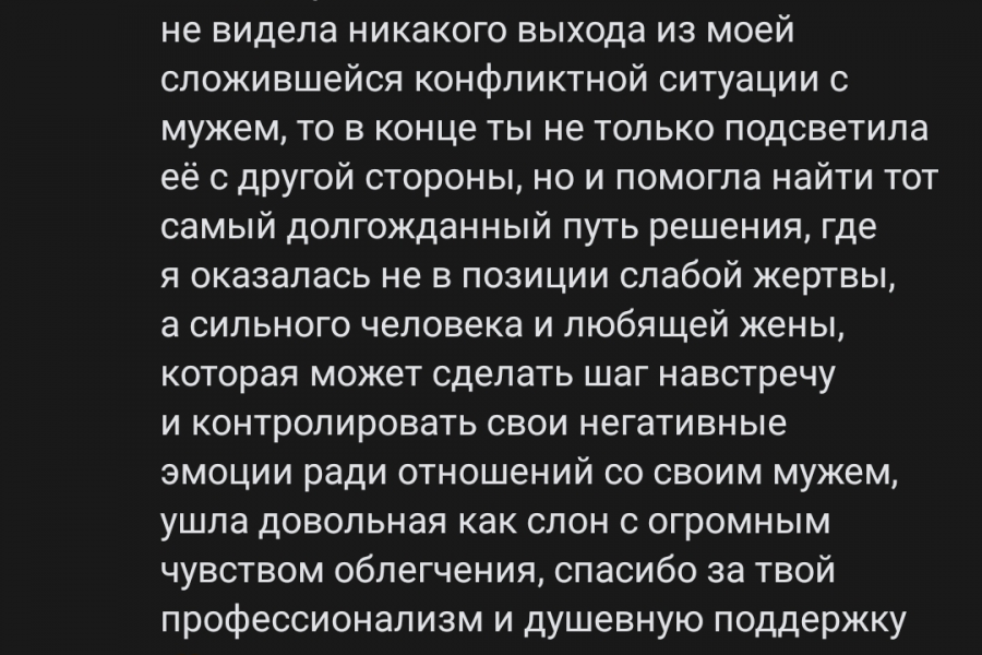 На консультации я помогаю находить, осознавать, перепроживать и прорабатывать причины вашей проблемной, дискомфортной ситуации, свои негативные эмоции и чувства, программы, установки, мысли которые сейчас мешают жить счастливой и спокойной жизнью🙏❤️✨ вырабатывать новые, гармоничные модели и стратегии поведения, необходимые вам сейчас.