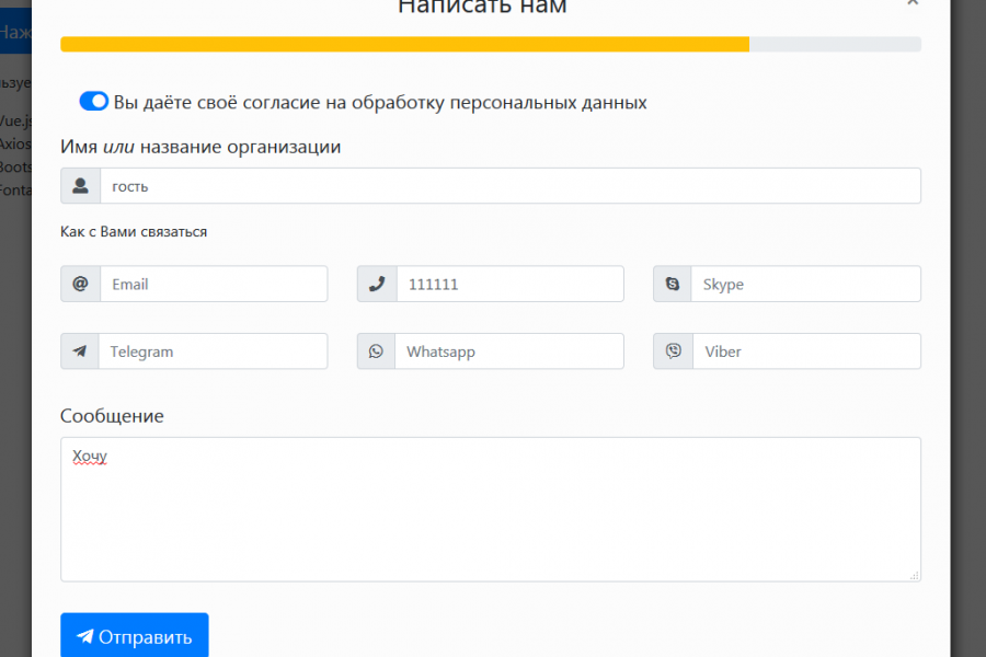 Контактная форма на сайт. В модальном окне или на странице. Дизайн под ваш сайт. Произвольные поля. Проверка вводимых данных.