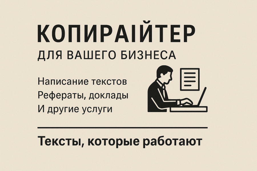 Копирайтер, имею опыт работы 1,5 года. Могу написать текст на интересующую вас тему, сделать доклад / реферат и другую работу в своей сфере деятельности