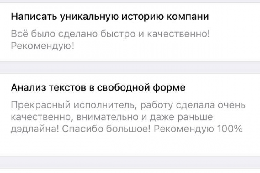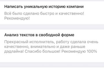 Составление писем и уведомлений, проверка грамматических, орфографических ошибок, тексты для сайтов, тексты для новостей, составление описаний, написание статей, поздравительные тексты, рекламные тексты, пост-релизы, бизнес-копирайтинг, seo-копирайтинг, seo-тексты, написание докладов, эссе, рефератов, научных статей, написание постов для различных площадок, составление продающего резюме, составление продающего объявления, написание креативных названий, переводы, конвертация, оформление презентаций