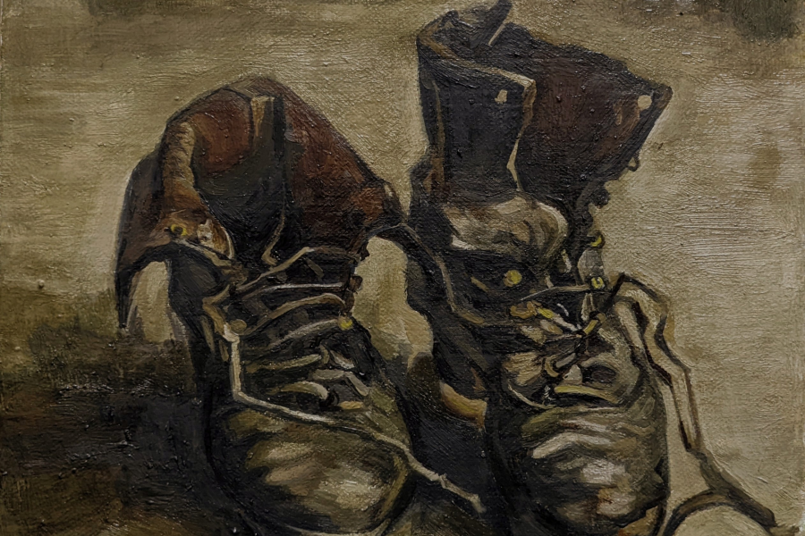 Копия картины Ван Гога «Башмаки» написана маслом на холсте 20×20 см в 2022 году.