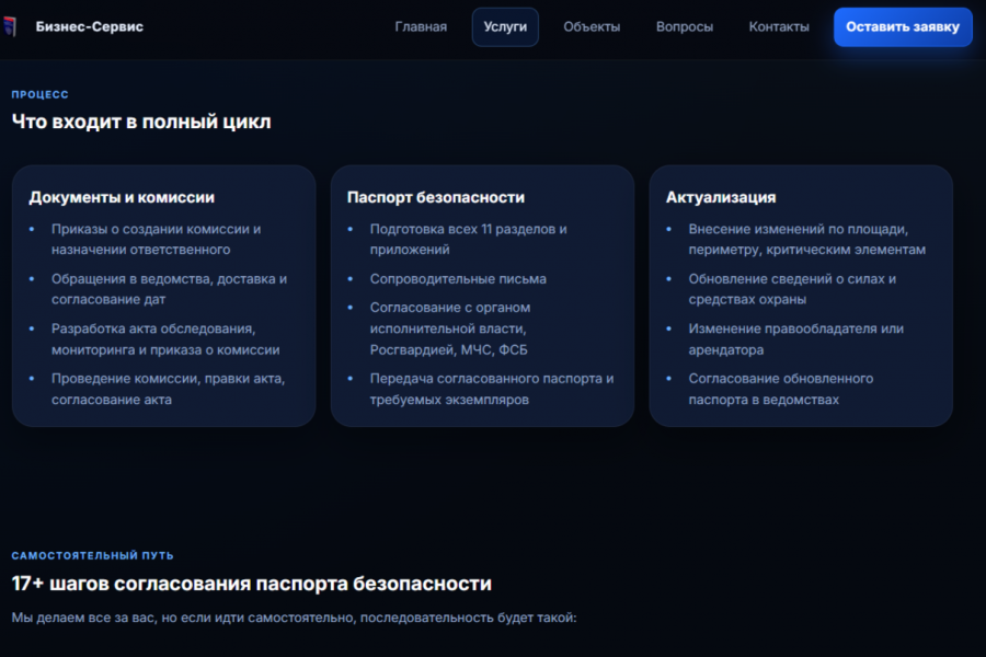 В основе — индивидуальный дизайн, интуитивная навигация и базовая SEO оптимизация для дальнейшего продвижения. Полный цикл от идеи до запуска.