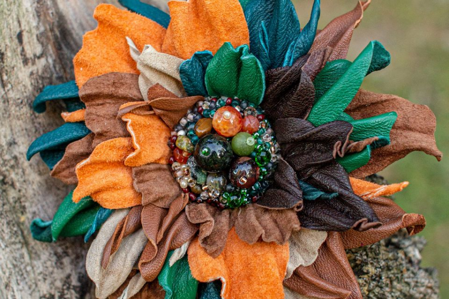 Создам для вас красивую, авторскую брошечку ручной работы, из натуральной итальянской кожи, натуральных камней и чешского бисера.