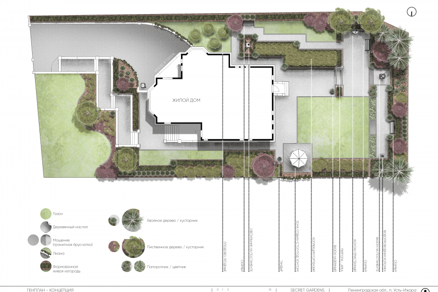 Если строений на участке пока нет, то предложу оптимальный вариант их расположения (с учетом нормативов, удобства и визуальной гармонии).