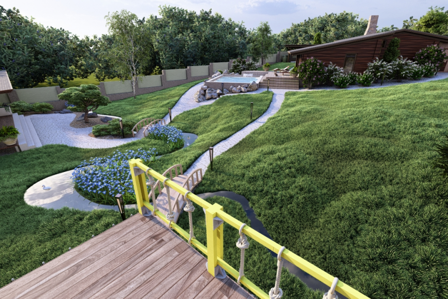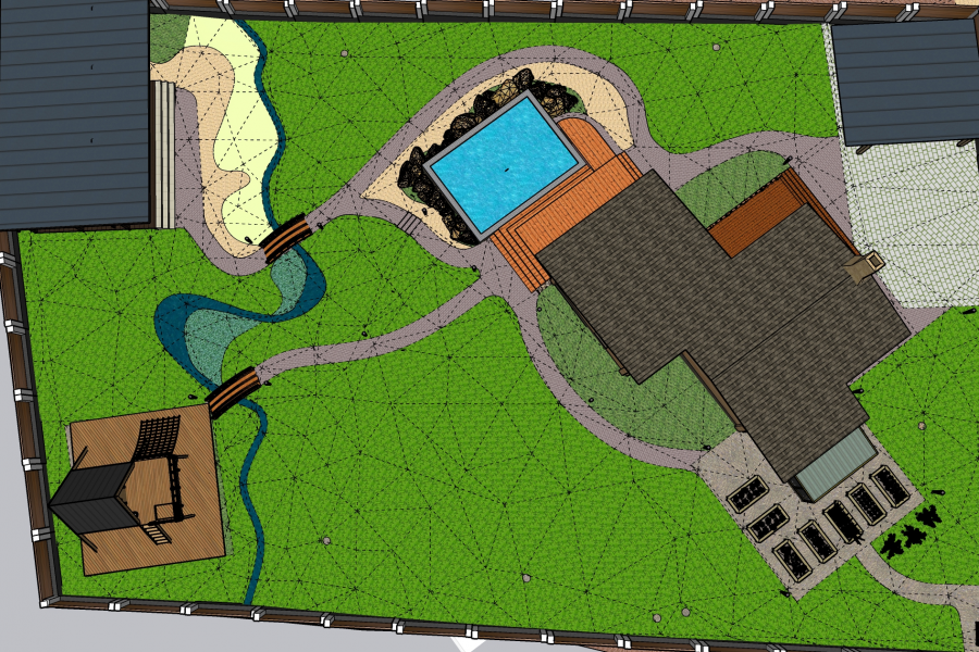 Трёхмерное проектирование частных и общественных территорий. Цена для участков до 5 соток с перепадом высот до 0,5 м. Для участков с большим перепадом высот необходима топосъёмка