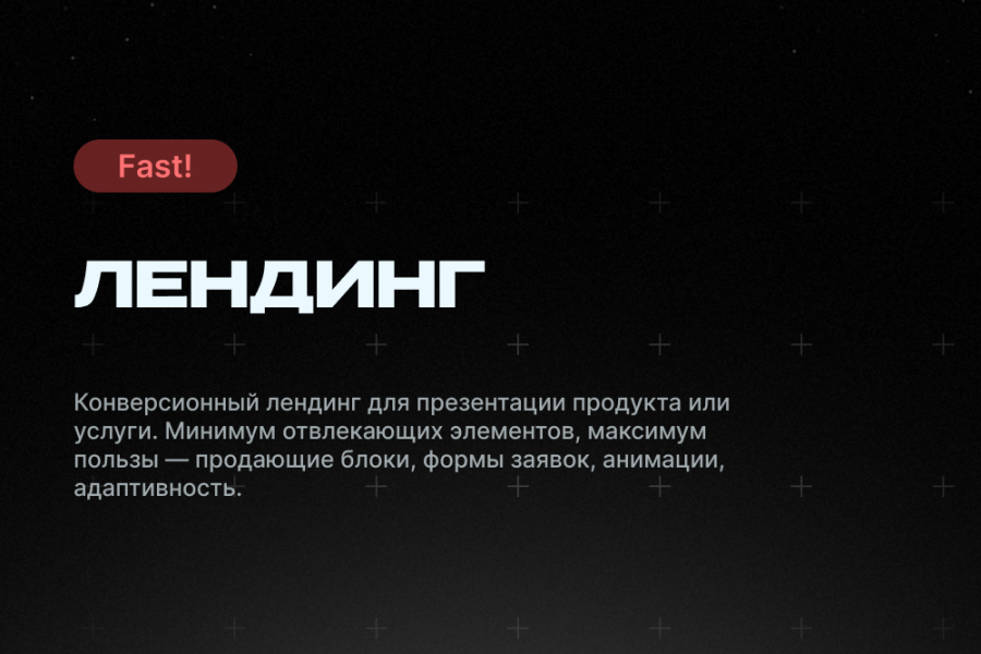 - Разработка лендинга из 5–7 продающих блоков, например: