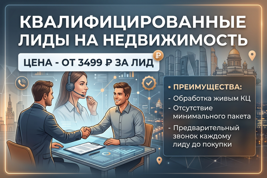 Квалифицированные лиды на недвижимость в Москве. Каждая заявка проходит квалификацию живим колл-центром (уточнется бюджет, способ покупки, наличие и размер пв)